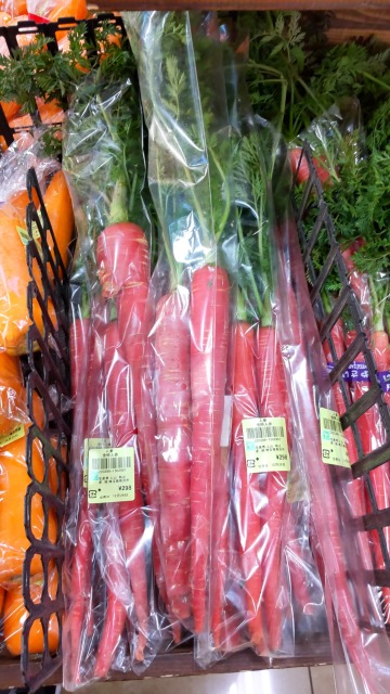 ニンジンは、根を食用とするために栽培する作物の一種である。 画像出典:自宅近くの農産物直売所にて筆者撮影