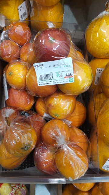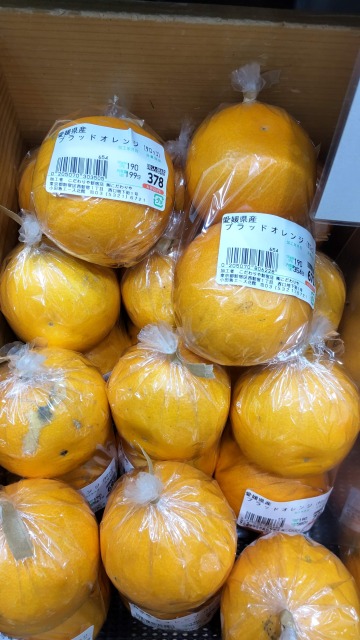 画像出典:(左)埼玉県川越市にて筆者撮影/(右)東京都新宿区にて筆者撮影 果肉が濃い紅色になる珍しい品種で、表皮もほかのオレンジ類に比べて赤味が強い。ブラッドは英語で「血」の実で、果肉や果汁が鮮血のように赤いことからこの名称で呼ばれる。これは、赤色色素のアントシアニンを大量に含んでいるからである。 古くはヨーロッパの主要な栽培品種であったが、現在はバレンシアオレンジに生産量を抜かれている。 現在は果汁をジュースにしたものが販売されているほか、少数ながら生の国産品も出回っている。