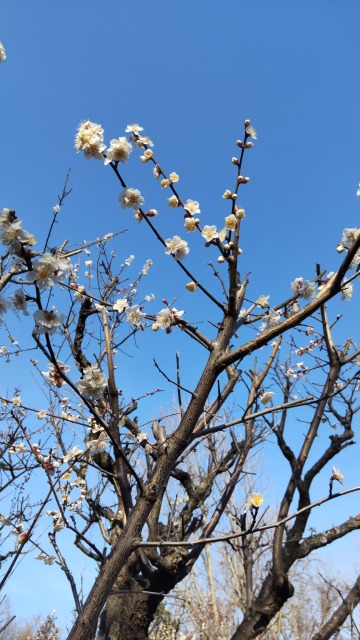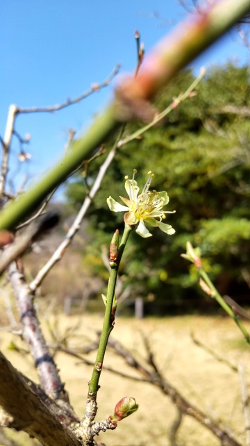 画像出典:小石川植物園にて筆者撮影 ウメの園芸品種。花弁は薄い黄色であるが、開く前のつぼみはより黄色が濃い。展開した花弁が細くなるのが特徴である。