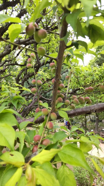 画像出典:花と果実の写真はいずれ東京都薬用植物園にて撮影 樹形はウメに似ているが、本種は花を観賞用というよりむしろ、果実を食用として利用する専門の品種である。花は直径2ck内外で、白色。果実が直径3㎝内外であるのが特徴で、熟していない果実は梅干しや塩漬けとするほか、甘露煮にする。塩漬けしたものは近年、酒のつまみとして「カリカリ梅」の名称で出回っている。