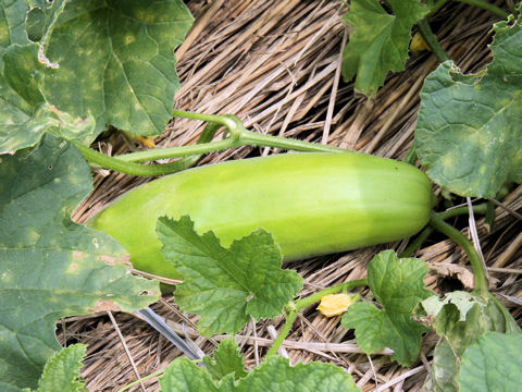 中国が原産のつる性一年草で、わが国には奈良時代にはすでに渡来している。草姿はマクワウリに似ており、葉から花にいたるまでよく似ている。 未熟な果実を漬物にして食用とする。学名に「var.conomon」とあるのは、「漬物」を意味する日本語の「香の物」がなまったものである。地方ごとに様々な品種があり、普通は写真のように黄緑色だが、スイカのように深緑色の縦じまがあるもの*1、全体が深緑色の品種もある。緑色が若干濃いものを「アオウリ」(硬くしまった果肉の質が漬物に向き、また果実の形状が丸みを帯びているため「マルヅケウリ」や「カタウリ(堅瓜)」の名称もある)、黒に近い緑色のものを「クロウリ」(黒瓜)、果皮が濃い緑色で表面に縦じま模様のあるものを「シマウリ」(縞瓜)と呼称する。 シロウリとマクワウリの交配を元祖とする園芸作出品種で、果実のサイズも大ぶりになりやすい「ハグラウリ(歯ぐら瓜)」も栽培されており、これは肉質が柔らかいため、歯がぐらつくような人でも食用にできるほどであるからこの名がある。普通果皮は鮮やかな緑色(いわゆる「青はぐら」)で、薄い縦溝が走ることが多い。黄緑色の「白はぐら」という品種もある。 画像出典:岐阜県で古くから栽培されてきた「かりもり」。愛知県で栽培されるアオウリの一種である。肉質が締まっていることから「カタウリ(堅瓜)」の名称でも知られる。新宿伊勢丹で撮影。 画像出典:シマウリ。福井県で栽培される「かわずうり」というウリは本種の系統である。筆者の蔵書「原色図説植物大辞典」(1938年出版、村越三千男(1872-1948)による著書)から抜粋。 画像出典:上から「白はぐら瓜」と「青はぐら瓜」。「白はぐら瓜」は池袋の百貨店にて、「青はぐら瓜」は自宅近くのスーパーにて撮影。 名称は、熟すと白っぽくなるためこの名称があるが、マクワウリと違って熟しても甘くはならない。現在は家庭で漬物を作ることが少なくなったため、シロウリの栽培も徐々に減っているが、6月、早ければ5月下旬から百貨店や大型スーパー、農産物直売所で見かけることがある。