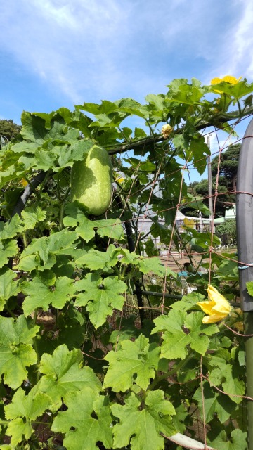 トウガンは、果実を食用とするために栽培する作物の一種である。 画像出典:東京都薬用植物園にて撮影。