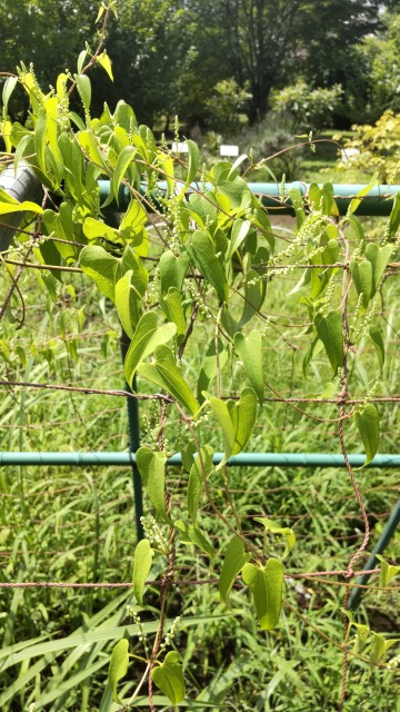 ヤマノイモとは、地下茎をすりおろして食用にする山菜の一種。まれに栽培もされる。 画像出典:東京都薬用植物園にて筆者撮影