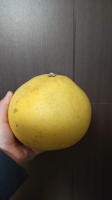 画像出典:筆者撮影(京王百貨店新宿店) ザボンの中でも果実が最大の品種で、直径は20㎝で、果実の重さは2㎏内外である。わが国には大正時代末期に植物学者の島田弥市?がベトナムのサイゴン市から持ち込んだのが始まりだが、栽培方法が確立されたのは1930年代である。現在は熊本県八代市のブランド品となっている。利用方法はザボンに同じ。