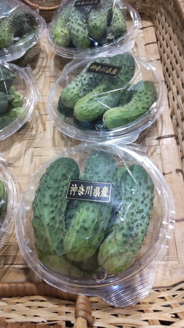 画像出典:池袋の商業施設にて筆者撮影 ヨーロッパ種の小型のキュウリ。果実表面にはいぼが多い。生食では苦みが強いので食べにくいことから、ピクルスに加工して食する。わが国でも山形県で「酒田きゅうり」が栽培されているが、それは明治ごろに本種が導入され、栽培を重ねるうちに苦みが弱まったものである。