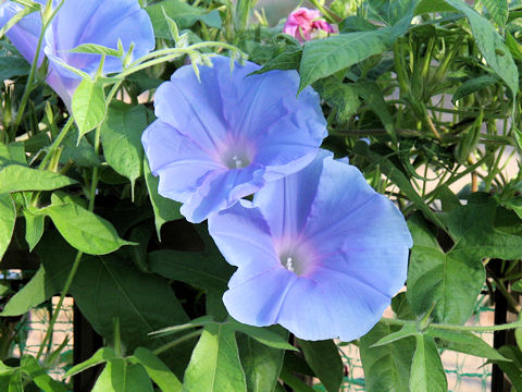 中国などの東アジアが原産で、我が国には奈良時代もしくは平安時代初期に遣唐使が種子を本土に持ち帰ったのが始まりである。当初は「牽牛子」と称し薬用植物として栽培されていたが、次第に観賞用として栽培されるようになり、江戸時代には品種改良を重ねて葉や花の形状が変化した「変わり朝顔」がもてはやされたという。 葉はの尖った翼片をもつ並葉ないしはハート型で、花は漏斗状になり、色はマゼンタピンクや紫色、青色など様々である。かつては黄色いアサガオや黒いアサガオが存在していたらしいが、一度途絶えてしまった。2014年に、キンギョソウの花の黄色色素のもととなる遺伝子を抽出し、開花させることに成功している。