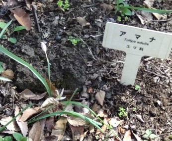 アマナ(甘菜)とは、野草の一種である。 画像出典:東京都薬用植物園にて筆者撮影。 科名:ユリ科アマナ属 学名:Amana edulis 原産地:日本、中国 生態:多年草 我が国の本州、東北地方南部以南から四国・九州、それに朝鮮半島や中国東北部に分布する多年草で、日当たりのよい草地や田んぼのあぜ道に生息する。 草丈は15cmから20cmになり、葉は根生葉で、やや銀色を帯びた緑色になり、線形となる。早春から春の盛りにかけて花茎をのばし、白く小さな花を咲かせる。この花は、横から見るとチューリップの原種を思わせるような可憐な形状である。花の裏には6枚の花被片があって、薄紫色である。 地下に鱗茎を持ち、この鱗茎は甘みがあって食べることができる。それゆえ、アマナの和名がある。別名をムギクワイといい、これもやはり鱗茎が食用になり甘みを持つことからきている。 かつてはチューリップ族に属していたが、研究が進み、現在はアマナ属として独立している。近縁種にヒロハアマナと呼ばれるものはあるが、こちらは葉の幅が広く、中心に白い線が入ることで区別できる。