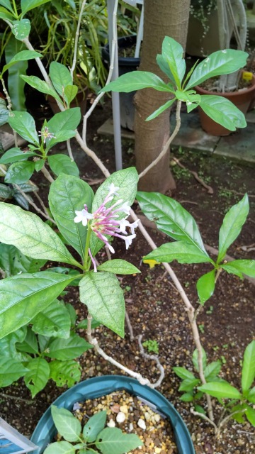インドジャボクとは、薬用植物の一種である。 画像出典:東京都薬用植物園にて筆者撮影 科名:キョウチクトウ科インドジャボク属 学名:Rauwolfia serpentina 原産地:インド、東南アジア 生態:常緑低木 インドや東南アジアに生息する常緑低木で、樹高は60㎝ほどになる。葉は先のとがる楕円形で、対生または輪生する。葉腋から赤みを帯びた花梗の先に集散花序をつけ、白色から淡いピンク色の筒状花を咲かせる。 原産地のインドでは蛇に咬まれた際の傷薬に用いられており、そのことが和名の由来となっている。また、根の形が蛇に似ているため、この根の形状が和名の由来であるという説もある。 長らく、本種が薬効を持つという科学的な根拠は不明であったが、1942年には血圧を下げる作用があることが発見されている。その10年後にはレセルピンというアルカロイドが分離され、血圧降下薬、鎮静剤の原料にされている。しかし、量を間違えると副作用により幻覚を見ることがあるため、専門家しかその植物を薬用として利用することができない。 花は美しいが、観賞用として販売されているということはないため、現物を見たい場合は薬用植物園や大型の植物園の温室に行くしかない。