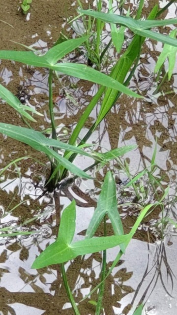 オモダカ(澤瀉、沢瀉)とは、水生植物の一種である。 画像出典:赤塚植物園(板橋区)にて筆者撮影 科名:オモダカ科オモダカ属 学名:Sagittaria trifolia L. 原産地:ユーラシア大陸 生態:多年草 我が国を含むアジアから東ヨーロッパにかけて分布し、水田や湿地、ため池、用水路に自生する水生の多年草である。現在は観賞用に庭園に植えられることもあるが、一方で稲農家からは稲の生育を邪魔する雑草として駆除対象となっている。 春に土中の塊茎や種子から芽を出し、葉は根元にまとまってつく。芽生えたばかりの葉は細い線形であるが、成長するにしたがって矢じりのような形状になる。8月から9月に花茎をのばして花を咲かせる。花は単性花で、雌雄同株、白い花弁を3枚つける。果実はいわゆる蒴果で、内部には羽をつけたグライダー構造の種子が入っている。地下には走創枝(ランナー)を伸ばして、その先端に丸い小さな塊茎をつける。 この塊茎はでんぷん質に富み、食用になるが、せいぜい小指の先端くらいの大きさしかない。この塊茎部分を大きくし、味をよくするため改良されたものがクワイである。栽培種のクワイのうち、原種のオモダカに最も近い性質をもつものが、大阪府で江戸時代から栽培されている「吹田クワイ」で、かつては除草剤の影響で数を減らしていたが、現在に至るまで小規模ながらも栽培は続けられている。