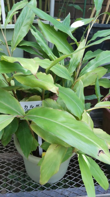 カルダモンは、香辛料の一種である。中国名の小荳蔲(しょうずく)でも知られる。 画像出典:東京都薬用植物園にて筆者撮影 科名:ショウガ科ショウズク属 学名:Elettaria cardamomum 原産地:南インド 生態:常緑多年草 南インドが原産の常緑多年草である。草丈は2m~4mに達し、葉は2つの列に互生し、披針形で長さ40cm~60cmになり、先端はとがる。 花は白色から薄紫色で、長さ30cm~60cmの緩い穂状花序に咲き、花の後に黄緑色の蒴果をつける。 蒴果の内部は15~20個の黒色もしくは茶色の細かい種子が入っており、この果実は「カルダモン」と呼ばれ、舌を刺すようなビリビリとした辛みと芳香があり、カレーや肉料理に用いられる。