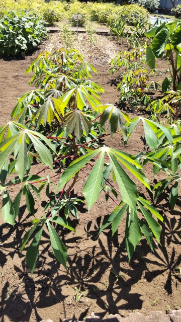 キャッサバとは、有用植物の一種である。 画像出典;東京都薬用植物園にて筆者撮影 科名:トウダイグサ科マニホット属 学名:Manihot esculenta 原産地:メキシコ 生態:常緑小低木 メキシコや南米が原産の常緑小低木で、今では世界中の熱帯・亜熱帯地方で栽培されている。樹高は2m~3mで、茎の基部から出たサツマイモのような紡錘形の褐色の塊根を食用にする。青酸を含むためそのままでは食用にできず、加熱するか何度も水にさらして青酸を抜いてから食用にする。タピオカの原料で、タピオカは本種を毒抜きして製粉し、水を加えて糊化させてからこねて球状にする。本来は白色だが、イカ墨で着色しているため漆黒になる。 我が国には幕末から明治にかけてコメに代わる救荒職として注目され、蘭学者の高野長英が「答必膃加」の漢字を当てて日本に紹介している。 原産地や熱帯の諸地域では、塊根を蒸かしてサツマイモのように食する。また、育てられる作物の品種が限られるアフリカの乾燥帯地域では、葉を毒抜きしてから粉末にし、野菜として食している。我が国ではタピオカなどの食用以外にも、葉に独特の模様のある品種を観賞用にする。