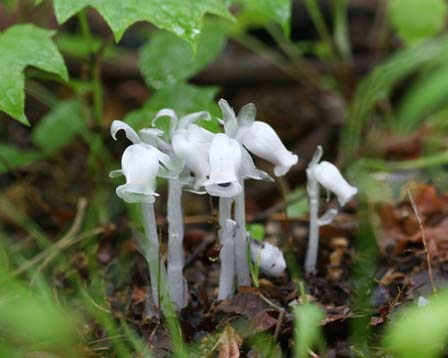 ギンリョウソウ(銀竜草)とは、腐生植物の一種である。 写真撮影:青木繁伸(群馬県前橋市) 科名:ツツジ科(旧イチヤクソウ科)ギンリョウソウ属 学名:Monotropastrum humile(D.Don)H.Hara 原産地:東アジア 生態:多年草 別名:ユウレイタケ 我が国の各地や南千島、樺太、台湾、ヒマラヤに分布する多年草である。山地の林中の落ち葉に生える腐生植物で、草丈は10㎝から20㎝である。茎は多肉質で、一つの株につく数本の茎が発生するのである。根以外の部位がすべて純白で、透き通った見た目をしている。葉は鱗片のようになり、茎を抱くようにして互生する。夏に花を咲かせ、茎の先端に一つの花をうつ向かせるようにして咲かせる。苞と花弁は3枚から5枚あり、10本の雄蕊を持つ。秋には人間の目玉を思わせるような果実をつけ、熟すと柔らかくなってつぶれ、種子を散らす。和名は、茎の様子と色合いを銀色の竜にたとえたものであろうと思われる。また、やはりその見た目と植物とは思えない質感からか「ユウレイタケ」の名称でも呼ばれるが、本種はれっきとした植物であって、きのこ(いわゆる菌類)ではない。