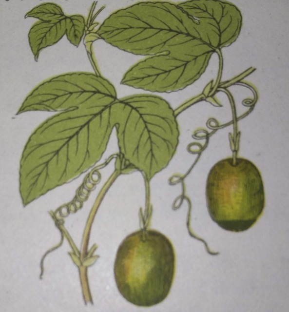 クダモノトケイソウとは、熱帯果樹の一種である。現在は「パッションフルーツ」の名称の方がよく知られている。 画像出典:筆者の蔵書「原色図説植物大辞典」(1938年)より抜粋 科名:トケイソウ科トケイソウ属 学名:Passiflora edulis 原産地:ブラジル 生態:常緑小低木 ブラジルが原産のつる性常緑小低木で、わが国には明治時代の中ごろに渡来し、現在は沖縄県や鹿児島県などで栽培されている。 白色または薄紫色の花を咲かせ、花弁と萼片が5個ずつ交互に並ぶ。またひげ状の副花冠が長く垂れ下がる。花の後に楕円形の艶がある果実を実らせ、緑色から赤紫色ないしは黄色に熟す。 果肉には酸味と芳香があり、生食やジュース、ゼリーの材料にされる。 わが国では露地栽培できる熱帯果樹の一種であり、栽培が簡単なので、家庭果樹としても人気である。