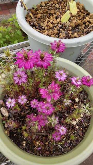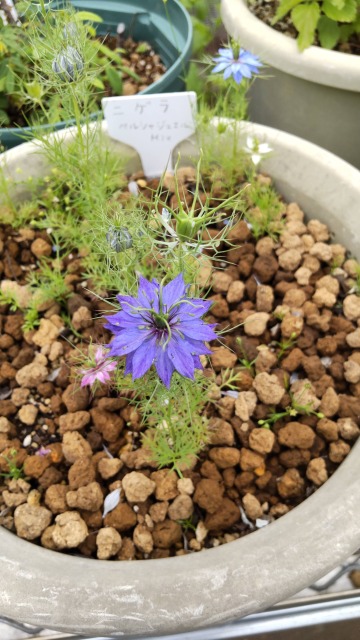 画像出典:東京都薬用植物園にて筆者撮影 科名:キンポウゲ科クロタネソウ属 学名:Nigera damascena 原産地:地中海沿岸 生態:多年草 地中海沿岸から北アフリカに分布する多年草草本植物で、わが国には江戸時代に渡来し、現在は園芸植物として人気を博している。 葉は羽状複葉で、ニンジンやウイキョウなどの食用のセリ科植物を思わせる細い形状をしている。草丈は20㎝から60cmほどになり、初夏に花を咲かせる。花色は多くは青色であるが、園芸品種の中には白色やピンク色の品種もある。 花弁のように見えるが、実際は花弁ではなく蕚片が発達して花弁のような見た目になったものである。花の後には蒴果をつけ、黄緑色地に赤い紫色の縦じま模様が入る。果実は熟すと割れて黒い種子を露出する。和名の「クロタネソウ」はこの黒い種子に由来する。種子はニゲラ油という油分を含んでおり、食用油を絞るために利用する。