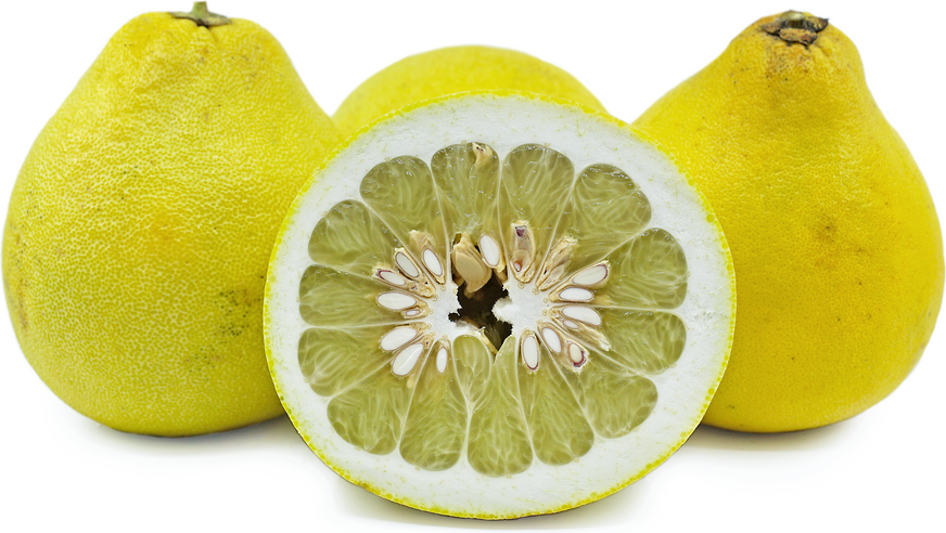 ザボンは、果樹の一種である。 画像出典:https://specialtyproduce.com/produce/pomelo/pomelo_6706.php(上画像。ザボンには様々な品種がある)、https://specialtyproduce.com/produce/pomelo/mato_buntan_11989.php(下画像。「麻豆文旦(まとうぶんたん)」という中国由来の品種である。) 科名:ミカン科ミカン属 学名:Citrus grandis 原産地:東南アジア・中国南部・台湾 生態:常緑低木 東南アジア・中国南部・台湾が原産の常緑低木で、わが国には江戸中期に渡来している。貿易船が難破して、現在の鹿児島県阿久根市に漂着し、船長の謝文旦から救助のお礼に贈られたという伝説があり、別名の「ブンタン」はこの船長に由来するという。 樹高は3mほどになり、果実は柑橘類の中でも最大となり、500gから2㎏になる。分厚い果皮とさっぱりした風味のある果肉が特徴で、果肉色は薄黄色や赤色がある。果肉は生食あるいはジュース、マーマレードにする。 晩秋ごろから果実の出荷が始まり、甘みを乗らせるため数か月の追熟を行ってから出荷する。 牧野富太郎氏は、ザボンの系統を以下のように分類している。 ●果実は球形、果肉の色は薄黄色→ザボン ●果実は球形、果肉の色は鮮紅色→ウチムラサキ(最上の画像の左) ●果実は楕円形ないしは釣鐘型、果肉の色は薄黄色→ブンタン 近年はこうした区別はほとんどなされなくなっており、市場ではブンタンもしくはザボンの名称で流通する。また、「ウチムラサキ」の呼称も、九州地方(特に福岡県)などごく一部に限られる。