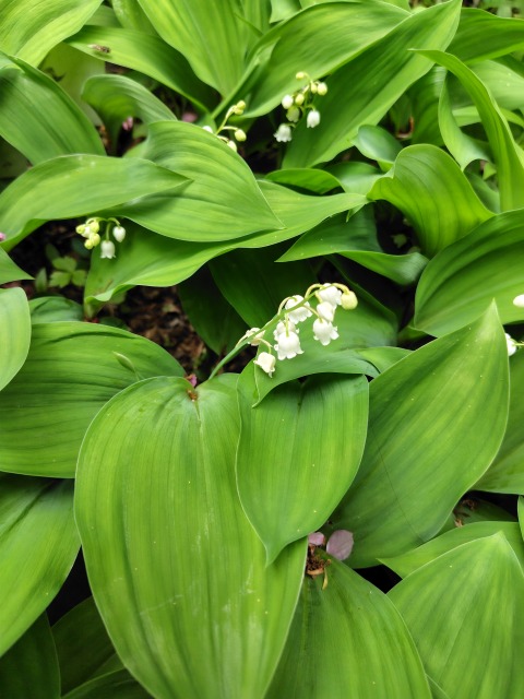 画像出典:(左)スズラン。牧野記念庭園にて筆者撮影。/(右)ドイツスズラン。四ツ谷駅付近にて筆者撮影。 科名:キジカクシ科スズラン属 学名:Convallaria majalis L.var.manshurica(=Convallaria keiskei) 原産地:日本、朝鮮、中国、シベリア東部 生態:多年草 北海道に多く生息し、本州中北部にみられるほか、関西や九州の山地にも生息例が知られる多年草である。 葉は幅広い形状で、ハランの葉を小さくしたような形状であるが、下部で抱き合わせるような形状になる。草丈は15㎝から20㎝程となり、晩春に葉のわきから一本の花茎を出し、芳香を放つ白い釣り鐘型の花を複数下に向かって吊り下げるようにして咲かせる。花の後には直径5㎜程度の赤い球形の果実を鈴なりに実らせる。和名の「スズラン」は花の形状を小さな鈴に例えたものである。 花屋で「スズラン」という名称で出回っているのは本種ではなく、明治ごろにわが国に導入されたヨーロッパ原産のドイツスズラン(Convallaria majalis)である。本種とドイツスズランは、葉の裏の色で区別する。本種の葉の裏は薄い緑色であるのに対し、ドイツスズランの葉の裏は濃い緑色である。また、日本在来種のスズランよりドイツスズランの方が花の咲かせる数が多く、かつ花の芳香が強い点でも区別できる。現在はこのドイツスズランは日本在来種の変種とみる向きも強い。 本種は有毒植物としても知られており、コンバラトキシンやコンバラマリンなどの有毒成分を全草に含んでいる。誤食すると嘔吐、頭痛、眩暈、血圧低下、心臓麻痺などの症状を起こし、重傷の場合、心不全から死亡に至ることもある。花の後に実る赤い果実はおいしそうな見た目をしているため、子供が誤って食べてしまった事例が知られている。また、若い芽をギョウジャニンニクと誤って食してしまった例が知られている。本種の毒性分は水に溶けだしやすく、本種による中毒事故のもっと悲惨な例に、ある病院に入院していた5歳の男児がふと夜中にのどの渇きを覚え、ベッドのそばに生けられていたスズランの一輪挿しのコップの中の水を飲み干し、そのまま帰らぬ人となってしまった例が知られている。 とはいえ、口に入れなければどうということのない植物で、手入れもしやすいことから春の花壇を飾ってくれる良い素材となりうる。