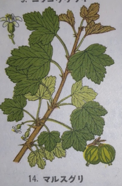 セイヨウスグリとは、果樹の一種である。 画像出典:村越三千男「原色図説植物大辞典」(1938)より抜粋。 科名:スグリ科スグリ属 学名:Ribes uva-crispa 原産地:ヨーロッパ・西アジア 生態:落葉低木 別名:マルスグリ、グーズベリー 樹高1mから3mに達する落葉低木で、わが国には明治期に渡来している。現在、園芸店や果物屋で「グーズベリー」名義で流通しているのは本種で、我が国在来のスグリはほとんど流通していない。 枝には鋭いとげがあって、幹には短い側枝があって放射状に分岐する。葉は掌状で先端が5つに分かれ、葉の縁には鋸歯がある。5月に葉腋から1対の釣り鐘に似た形状の小さな黄緑色の花を咲かせ、初夏に透明感のある黄緑色ないしは紫色の果実をつける。 果実は果物として食用にされ、生食することも少なくはないが、たいていはジャムにする。別名のマルスグリはスグリと比較して果実が丸みを帯びていることからきており、またグーズベリーは果実先端がガチョウ(グース)のくちばしに似ているため。余談だが、北海道ではこの英名が訛った「グスベリ」という名称で呼ばれる。北海道出身の歌手・中島みゆき女史が作詞・作曲した曲『観音橋』(2020)には「グスベリ」という言葉が随所にみられる。