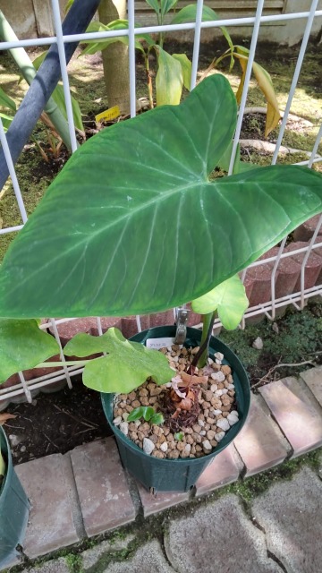 タロイモとは、食用になる植物の一種である。 画像出典:東京都薬用植物園にて撮影 科名:サトイモ科サトイモ属 学名:Colocasia esculenta 原産地:東南アジア 生態:多年草 サトイモ科の有用植物で、東南アジアやオセアニアなどで栽培される。わが国で縄文時代から栽培されているサトイモやトウノイモ、ヤツガシラ、沖縄地方で水田にイモを植えて栽培される田芋(ターンム)も本種の一品種ともいえる植物である。現在は熱帯地域でおよそ200種類が栽培されている。本種の性質は強権で、畑でも栽培されるが、水田で栽培されることもある。 根茎は紡錘形になり、表面は黒褐色になる。草丈は1mほどになり、長い葉柄を伴うやゝ縦に長い心臓型の葉を持つ。花は細長く黄色い仏炎苞を持つ肉穂花序で、花序の上部に雄花、下部に雌花を咲かせる。 本種の食用部位は肥大した根茎で、蒸かして皮をむいて塩などで味付けして食用にするほか、ゆでてすりつぶしたものを主食とし、食べやすい大きさに切ってから揚げにする。また、若い葉は青菜として食用にされる。