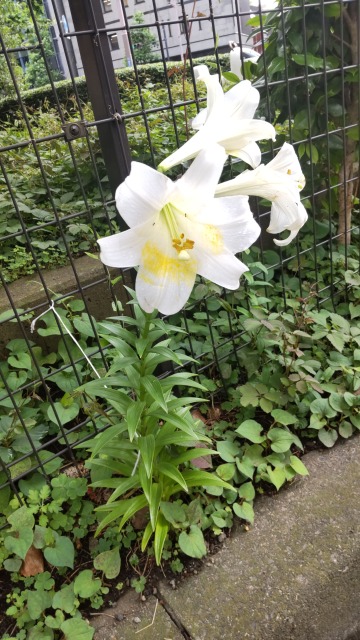 テッポウユリとは、園芸植物の一種である。 画像出典:東京都千代田区四ツ谷にて撮影 科名:ユリ科ユリ属 学名:Lilium longiflorum 原産地:南西諸島から台湾 生態:多年草 我が国の沖縄島から台湾にかけて分布する多年生草本植物で、わが国への正式な渡来時期は不明だが、江戸時代にはすでに観賞用のために栽培されており、その異国情緒あふれる見た目から「たかさごゆり」と呼ばれた(この名称は本種と系統の近い台湾原産の帰化植物のタイワンユリにも当てられることがある)。海岸の崖や岩場に生えるが、現在は観賞用として庭に栽培もされる。草丈は50cmから100cmで、茎は直立し、鮮やかな黄緑色の葉は披針形でやや幅が広く、互生する。 初夏にラッパ銃かトランペットのような芳香のある白い花を咲かせる。花披片が外側に向かって反り返るのが特徴である。 タイワンユリとしばしば交雑し、交雑種は「シンテッポウユリ(新鉄砲百合)」の名称で戦後から園芸植物として栽培されてきたが、生命力が強いので、路傍や河川敷に野生化している個体がみられる。