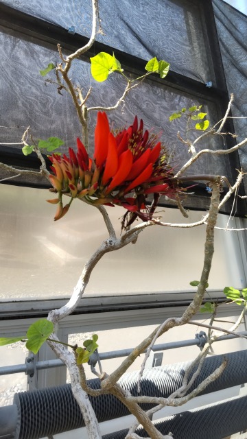 デイゴとは、樹木の一種である。本稿では「デイゴ」と濁っているが、濁らずに「デイコ」と発音することもある。 画像出典:小石川植物園にて筆者撮影 科名:マメ科デイゴ属 学名:Erythrina variegata L. 原産地:インド 生態:落葉高木 インドが原産の落葉高木で、マレー半島や太平洋諸島にもみられ、わが国では琉球諸島や八丈島、奄美大島や小笠原諸島で庭木としてされている。現在は沖縄県の「県の花」に指定されている。 樹子は15mに達し、幹は太くてこぶ状の凹凸を有する。枝には太い棘を有す。本種の漢字表記である「棘桐」はこの棘にちなむ。葉は三出複葉で互生し、小葉の大きさは全長8㎝~18㎝となる。 晩春に花を咲かせ、全長30㎝の花序を出し、斜め下向きに展開する5㎝~8㎝の大きさの朱色の蝶型花を密集して咲かせる。花の後にはいわゆる「豆果」をつけ、さやの全長は20㎝~30㎝となり、内部には赤褐色の楕円形の種実が入っている。 漢方の世界では樹皮を「海桐皮」と呼んで利用し、鎮痛剤や下痢・回線の改善に用いる。
