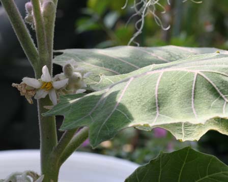 ナランジラとは、野菜の一種である。 写真撮影:青木繁伸(群馬県前橋市) 科名:ナス科ナス属 学名:Solanum quitoense 原産地:南米 生態:多年草草本 草丈は2mほどに達する多年草草本で、茎は直立し、多少枝分かれして茎の下部は木質化する。 果実は直径8㎝程度の球形で、当初は表面にモモのような産毛があるが、成長するにつれて抜け落ち、果実色も緑色から黄色味の強い橙色に変色する。 果実は柿に似た見た目であるが、かんきつ系の香りを持っており、味は柿とオレンジを足したような風味であると言われ、南米では生食するほか肉料理のソースにしたり、アイスやジュースにしたりと、人気の食材である。 ニュージーランドでは商業的な栽培がおこなわれており、わが国にもごくまれにニュージーランド産のものが入ってくることがある。