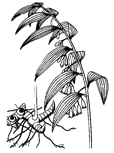 ナルコユリとは、山野草の一種である。 画像出典:牧野日本植物図鑑 科名:キジカクシ科ナルコユリ属 学名:Polygonatum falcatum A.Gray 原産地:日本 生態:多年草 山地の林にまゝ見られる多年草で、地下茎は横に這うようにして地下に張り巡らされ、そこから早春に芽を出し、草丈は50cmから100cmに成長する。 葉はやゝ幅の広い披針形で、長さは10cmから15cm程度である。同属のアマドコロとは茎が角張らない点で区別する。5月から6月に、葉腋から花柄を出してやゝ黄緑がかった筒状の白い花を下に垂れ下がるようにして咲かせる。秋には黒っぽい青緑色の直径1cmほどの果実をつける。 若い葉や根茎は古くから食用に親しまれてきたが、数を減らしつゝあるため、むやみな採取は控える。