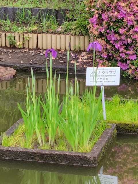 ノハナショウブ(野花菖蒲)とは、野草の一種である。 画像出典:東京都薬用植物園にて筆者撮影。 アヤメ科アヤメ属 学名:Iris ensata var. spontanea 原産地:日本、朝鮮半島、中国東北部、シベリア東部 生態:多年草 我が国の北海道から九州の山野の草原や湿原に生息しており、海外においては朝鮮半島や中国東北部、シベリア東部において生息例が知られている。 草丈は50cm~120cmほどになる。葉は細長い剣状で全長20㎝から60㎝、幅は5㎜から12㎜で、明確な主脈を持つ。一見するとハナショウブによく似ているが、葉の幅がそれよりも狭い点で区別できる。6月から7月にかけて花茎をのばし、赤みの強い紫色の花を咲かせる。花の直径は10㎝から15㎝で、在来アヤメ類の中では大きい。花弁のようなものが複数あるため、複雑な形状で分かりにくいが、最も外側にあって垂れ下がるのが「外花被」という部分で、大きな楕円形をしており、この基部に黄色い模様が入る。花の最上部で直立しているのは「内花被」と呼ばれる部分だが、細長いその形状から「立弁」や「耳弁」ともいわれる。そして外花被と内花被の間にある舌のようなものは、3つに裂けた花柱で、その先端、すなわち「ずい片」は二つに裂けて反り返る。 本種は園芸植物として名高いハナショウブの原種である。にもかかわらず、学名の部分に「変種」を意味する「var.」という表記がみられるが、これはヨーロッパで先に名付けられた基本種が、すでに日本で改良されていた園芸的品種であったためである。 現代では端午の節句(子供の日)の装飾や「菖蒲湯」に本種の葉を使うことが多いが、これはもともとショウブ科(旧サトイモ科)のショウブの葉を用いるのが正しい。名前と葉の形状の類似性から発生した誤解であるといえよう。余談だが、ショウブの花は黄緑色の棒状で、かなり地味な印象を与える見た目である。