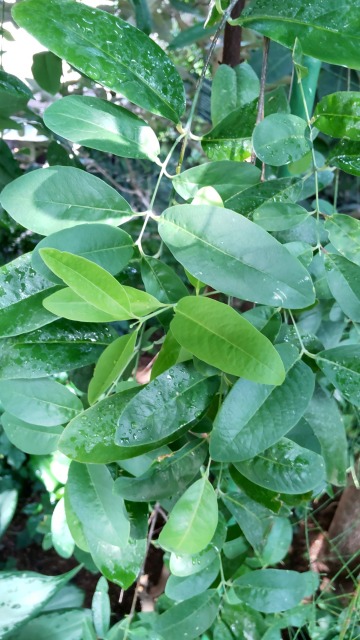 ビャクダン(白檀)とは、香木の一種である。 画像出典:板橋区立熱帯環境植物館にて撮影 科名:ビャクダン科ビャクダン属 学名:Santalum album 原産地:インド 生態:常緑小高木 インドや東南アジアが原産の常緑小高木で、幹は直立し、樹高は10mほどになる。樹皮は赤褐色で、葉は楕円形で対生する。5月になると、赤色の5枚の花弁からなる小さい花を咲かせる。わが国には古い時代に中国から渡来し、加工品が珍重されてきた。 あまり知られていないが、実は半寄生植物で、タケ類やヤシ類などの樹木に寄生する。筆者が撮影したビャクダンは、園の職員がトクサバモクマオウ(木賊葉木麻黄。葉が松のように細い。原始的な被子植物といわれる)に寄生させていた。種子が芽生えてしばらくは自力で育つが、やがて寄主になる樹木を見つけて根から養分をとるようになる。しかし、半寄生植物であるため、葉緑素を持ち、自らも光合成をする。この性質は、わが国の山野に生息する同じ科のツクバネも持ち合わせている。 「白檀」の名称は、心材が白色であることから。この心材に含まれる精油は芳香があり、古くから香や彫刻などの置物に利用されてきた。現在は扇子の骨やお線香の原料にもされる。乱獲が相次いだことで現在は世界的に絶滅危惧種に指定されている。また、雌雄異株であることと宿主となる植物が近くにないと生息しないことから、栽培は非常に困難である。そのため、原産地のインドでは政府によって伐採制限・輸出規制が掛けられている。 ことわざの「栴檀は双葉より芳し」の「栴檀」は本種、いわゆるビャクダンのことでセンダン(センダン科)ではない。