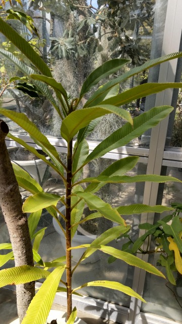 ビワモドキとは、果樹の一種である。 画像出典:小石川植物園にて筆者撮影 科名:ビワモドキ科ビワモドキ属 学名:Dillenia indica 原産地:インド、東南アジア 生態:常緑高木 インドやマレーシア、スリランカやタイが原産の常緑高木で、ほかに中国雲南省やベトナムにも分布している。わが国への正式な渡来時期は不詳だが、現在は各地の植物園の温室で栽培される。 樹高は15mほどになり、葉は長さ15~36cmで、はっきりした波形の表面で、目立つ葉脈を持ち、ビワの若い葉を思わせるような見た目である。和名の「ビワモドキ」はこの見た目に由来する。 花は直径15㎝から20cmほどで5枚の白い花弁と多数の黄色いめしべがある。花の後には特徴的な果実をつけ、繊維状パルプから構成される15個内外の心皮が癒着してできるので、特有の形状になる。この部分は酸味があって食用になり、原産地のインドではジャムにするほか、ダール(豆のペースト)やチャツネ(カレーの材料となる、果物で作った調味料)など、果物というよりはむしろ野菜的な利用法が多い。