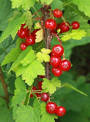フサスグリとは、果樹の一種である。わが国では「カラント」という名称でも知られる。 画像出典:https://www.ootk.net/cgi/shikihtml/shiki_2490.htm「四季の山野草」の「フサスグリ」のページから。 科名:スグリ科スグリ属 学名:Ribes rubrum 原産地:ヨーロッパ北部~アジア北西部 生態:落葉小低木 ヨーロッパ北部からアジア北南部の原産の落葉小低木(灌木)で、冷涼な気候を好み、明るい林内や林縁に生える。わが国には明治初期に渡来し、果樹として栽培される。 樹高は1mないしは1.5mで、枝にはとげがない。葉は浅く3~5裂する。4月から5月ごろ、総状花序を出して淡黄緑色の花を咲かせる。小さな花弁のように見えるのは萼片で、真の花弁はかなり小さくて目立たない。 果実は一房に15個ほどの小さな球形の果実(液果)をつけ、7月から8月にかけて鮮やかな紅色に熟し、透き通った見た目を呈する。この果実は甘酸っぱい風味があり、生食されるほか、ジャムや果実酒にする。