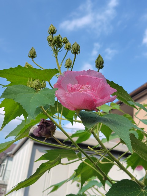 画像出典:自宅近くにて筆者撮影。同日の午前中と夕方にそれぞれ撮影したものである。 庭園や温室にて栽培される花木で、フヨウの園芸品種というべきものである。 樹形や葉の形、樹高などはフヨウとほぼ同じであるが、開花時期は晩夏から秋と、フヨウよりやや遅い。花は直径7㎝から8㎝で毎日次々と開き、1日でしぼむ。朝に先始めた時は純白だが、午後にはピンク色となり、夜にはしぼんで紅色となる。 これが、お酒を飲んで酔っ払った人の顔色が変わる様子を思わせることから「酔芙蓉(スイフヨウ)」の名前がつけられた。また、花の色の移り代わりの様子から「七変化」とも呼ばれる。