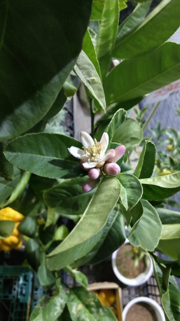画像出典:近くの園芸店にて撮影 科名:ミカン科ミカン属 学名:Citrus medica var. sarcodactylus 原産地:インド 生態:常緑低木 インド原産の常緑低木で、マルブシュカン(西洋名はシトロン)の変種である。わが国には平安時代に渡来しており、「本草和名」に名前がみられるという。樹高は3m~5mに達し、葉腋には棘があり、葉は先のとがる卵型である。1年じゅう、薄紫色を帯びた白い星型の花を咲かせる。果実は枝分かれしたような独特の形状になり、黄色に熟すと柑橘類特有の香りを放つ。これがお釈迦様の手のようであるため仏手柑と呼ばれ、英名もBuddha's handである。 果実は割っても果肉が少ないので、生食はできず、もっぱら観賞用にする。生け花や茶席の季節感を出すものとして飾られることもあるが、果皮を砂糖づけやマーマレードにすることもある。また、果実を乾燥させて漢方薬に用いる。