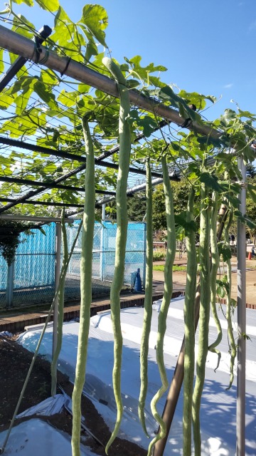 ヘビウリは、東南アジアで栽培される野菜の一種である。 画像出典:いずれも東京都薬用植物園にて筆者撮影 科名:ウリ科カラスウリ属 学名:Trichosanthes anguina 原産地:インド 生態:蔓性一年草 インドが原産のつる性一年草で、わが国には明治期に渡来しているものの、今日に至るまであまり普及していない。草姿は同属のカラスウリに似る。7月から9月にかけて花を咲かせ、その花もカラスウリとよく似ており、5枚の花弁の先端が分岐して糸状となる。果実は1m内外の長さとなり、白地に濃い緑色の縦じまが入る。熟すと鮮紅色になり、紙のように薄く、破れやすくなる。原産地のインドや東南アジア諸国では、若い果実をカレーなどに入れて食用としている。わが国では「セイロン瓜」の名称でごくまれに市場に流通するが、たいていは自家消費である。果樹園の近くに植えて木につるを絡ませるように栽培することで、木に蛇が止まっているかのように錯覚させ、果物の食害を防ぐ効果が注目されている。