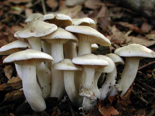 ホンシメジ(本占地)とは、食用きのこの一種である。 画像出典:https://fungi.sakura.ne.jp/index/fr_ajiwai_kinoko.htm 『キノコのフォトアルバム』の「ホンシメジ」のページから。 科名:シメジ科シメジ属 学名:Lyophyllum shimeji 原産地:日本、北米、ヨーロッパ 生態:担子菌類 我が国の各地やヨーロッパ、北米に分布するきのこである。秋にアカマツを交えた雑木林内に散生または単生し、しばしば少数が束生する。 きのこはカサと柄からなる。カサは初め半球形で、先端はとがらず丸みを帯びた山状となり、平らに開く。カサの縁は緩く内側に巻き、やゝ波打っていて、カサの直径は4㎝から10㎝程である。カサの上部は暗い灰色から淡い灰色を帯びた褐色で、付着物はない。厚みのある肉質で、内部は純白である。カサの下面はヒダ状になり、ヒダは当初は白くて柄に湾生またはやゝ垂生し密に配列する。柄の太さは5㎜から15㎜で、全長は7㎝から10㎝、表面は白くて下部が膨れぽってりとした見た目になる。これを大黒様になぞらえて「ダイコクシメジ」と呼ぶ事がある。胞子紋は白い。 本種は「香りマツタケ、味シメジ」のことわざの通りに古くから味の良い食用キノコとして知られ、炊き込みご飯やみそ汁の具、天ぷらや炒め物にする。近年では洋風にアヒージョやバター炒め、ホイル焼きにする。 曾ては近隣の植物と共生する菌根菌という特性のため、長らく栽培技術が確立されず、高級きのことして知られていたが、近年になって栽培に成功し、「大黒しめじ」という商品名で秋にスーパーやデパートで出回るようになった。