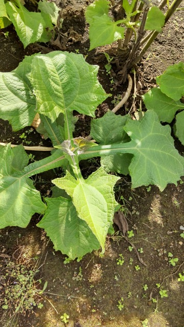 ヤーコンとは、野菜の一種である。 画像出典:東京都薬用植物園にて筆者撮影 科名:キク科スマランサス属 学名:Smallanthus sonchifolius 原産地:南米 生態:多年草 ペルーやボリビアなどの南アメリカ地域が原産の多年草で、わが国には昭和時代末期(1985年)に渡来し、現在は流通量こそ多くはないが、健康野菜として栽培される。 草丈は1.8mほどになり、葉は大きな卵形で、葉柄には翼を持つ。茎の頂部に、小さなヒマワリのような黄色い花を咲かせる。地下に紡錘状の黄褐色の塊根を持ち、この塊根が食用にされる。 塊根はサツマイモに非常によく似ているが、サツマイモとは異なり、でんぷんではなくフラクトオリゴ糖を蓄積しているので、ナシやレンコンを思わせるようなシャリシャリとした食感とさわやかな甘みがあり、食用にされる。皮をむいて適当な大きさに切り、水にさらして灰汁抜きした後(収穫から1か月も保存すれば灰汁は次第に抜けてくる)に、食感を楽しむため生でサラダや和え物、酢の物にしたり、煮物やきんぴら、フライ、天ぷらなどの加熱調理もされる。加熱するとレンコンよりほくほくとした食感になる。サツマイモなどと比較してイモ類の中ではカロリー値が非常に低く、食物繊維も多分に含まれるのでダイエット食品として注目を浴びている。 葉も乾燥させてハーブティーとして用いる。