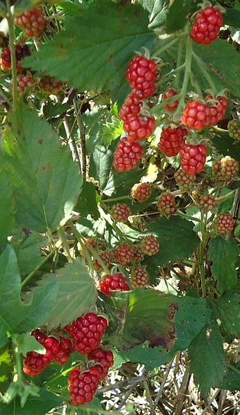 ラズベリーは、果樹の一種である。 画像出典:https://commons.wikimedia.org/wiki/File:Red_raspberries_on_bush_in_NJ.JPG?uselang=ja 科名:バラ科キイチゴ属 学名:Rabus ideanus 原産地:ヨーロッパ、北アジア 生態:落葉小低木 別名:ヨーロッパキイチゴ ヨーロッパや北アジアが原産の樹木で、4世紀には古代ローマを拠点としてヨーロッパ全土に栽培が広まり、16世紀には北アメリカでも栽培が始まっている。わが国には明治時代に渡来している。 樹高は1.5m~2.5mに達し、葉は羽状複葉で鋸歯があり、3または5個の小葉がつく。春に白い花を咲かせ、総状花序である。 夏に、小さな核果が集合してできた集合果をつける。果実色は最初は黄緑色ないしは黄色だが、熟すと鮮やかな赤色になる。中には橙色の果実をつける園芸品種もある。 果実は甘酸っぱく、生食やケーキのトッピング、ジャムにする。