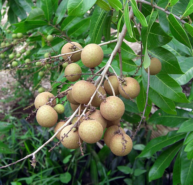 リュウガンとは、果樹の一種である。 画像出典:(上)福岡市植物園にて撮影/(下)https://commons.wikimedia.org/wiki/File:Longan_fruits.jpg 科名:ムクロジ科リュウガン属 学名:Dimocarpus longan 原産地:中国 生態:常緑小高木 中国南部やインドが原産とされ、現在は中国南部や台湾、ラオス、インドネシア、タイなどで栽培され、台湾では街路樹としても植えられている。日本での商業的な栽培の北限は鹿児島県の大隅半島や琉球諸島である。 現在は各地の植物園の温室でも栽培される。 我が国での最古の記録は17世紀後半の本草学者・貝原益軒の著書「大和本草」に見られる。 春から初夏にかけて黄白色の小さな花を円錐状に咲かせ、秋に直径3cmほどの丸い果実をブドウの房状に実らせる。熟した果実が落下して腐ると、ギンナンに似た匂いを放つという。 果肉は汁気を多く含んだゼリー質で、中心に大きな種子が一つあり、同じムクロジ科に属すライチとよく似ているものの、ライチの果実の表面が赤紫色で突起があることに対し、リュウガンの果実の表面は淡褐色で突起はなく、すべすべしている。 果実は生食ないしはドライフルーツにして食用にされる。ライチとは異なり特有の風味があって、好みが分かれやすい。