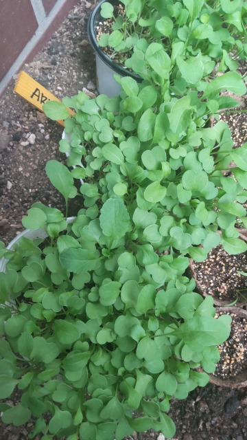 ルッコラとは、野菜の一種である。 画像出典:大学の庭園で撮影 科名:アブラナ科キバナスズシロ属 学名:Eruca vesicaria subsp. sativa 原産地:地中海沿岸 生態:一年草 別名:ロケットサラダ 英名:Arugula,Rocket salad 地中海沿岸が原産の一年草で、わが国への正式な渡来時期はわかっていないものの、牧野富太郎のライバルにあたる村越三千男(1871~1948)の著書『内外植物原色大図鑑』(1935年)には「キバナスズシロ」という和名で収録されていることから、そのころにはすでに渡来し、栽培されていたようである。とはいえ、同書には食用としての利用の解説はなく、「庭園にて栽植し観賞用に供す」という記述のみがみられることから、現代でいうところのグラウンドカバー的に植えられていて、野菜としては顧みられていなかったものと思われる。 草丈は20㎝から100㎝で、葉は長い柄を持つ楕円形であるが、羽状に深裂したり、不規則な波状になったりと一定ではない。概して言えば、大根の葉を小さくしたような形状である。春に散房花序を出して、薄いクリーム色に紫色の縞模様が入る十字型の花を咲かせる。和名の「キバナ」という特徴にはやや当てはまらないように思われるが、これは野生品の花が鮮やかな黄色であったことに由来する。 葉は胡麻を思わせるような香りとピリッとした軽やかな辛味がある。子の風味は加熱すると弱まってしまうため、普通サラダやカルパッチョなど、なるべく生で食すことができるような調理法が向いている。また、おひたしや炒め物に使われるが、なるべく加熱しすぎないのがコツ。
