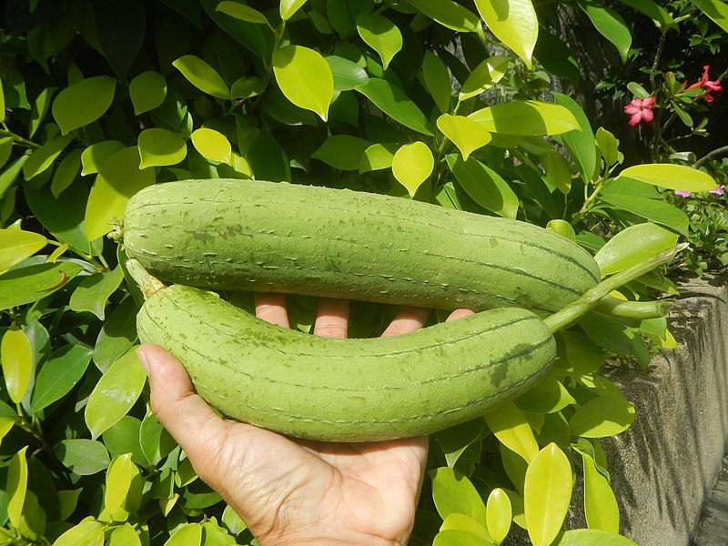 ヘチマは、ウリ科の蔓性一年草の有用植物である。 画像出典:(左1)ヘチマの花と葉、および蔓。ここにあげる4枚の写真はいずれも東京都薬用植物園にて撮影。(右2)ヘチマの若い果実。キュウリほどの大きさのこのころから食用になる。(左2)手前の果実は野菜として食せる。奥の黄色がかった果実はもう繊維が発達しているので、たわしにするのに向く。(右2)老熟した果実。種子は完全に熟して黒くなり、厚みが出る。繊維は茶色みが増す。