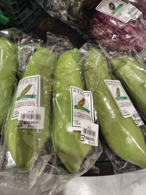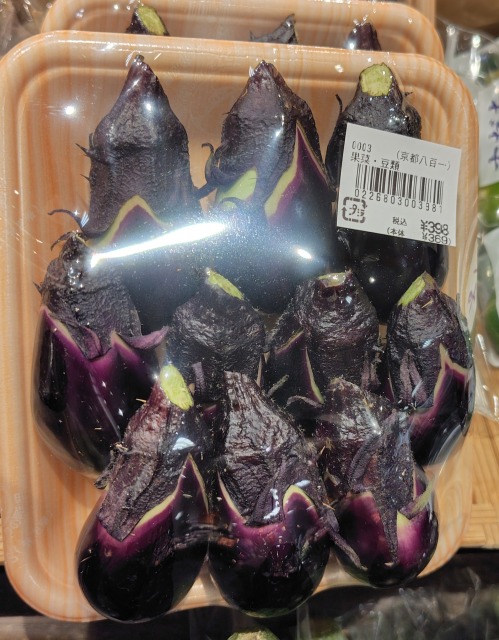画像出典:東京都国分寺市の商業施設にて筆者撮影 果実の大きさが3㎝から8㎝程の大きさになる品種で、山形の「民田なす」や京都の「もぎなす」、土佐の「十市なす」など、各地に様々の品種がある。画像のように卵形をしたものや、前述の丸ナスをミニチュアにしたような形状のものがある。煮たり焼いたりして食することもできるのだが、もっぱらは蔕を切り落として浅漬けや辛子漬け、麹漬けなどの漬け物にする。スーパーマーケットの漬物売り場コーナーでしばしば見かける、鮮やかなネイビーブルーの丸っこい形状の漬け物がこれである。