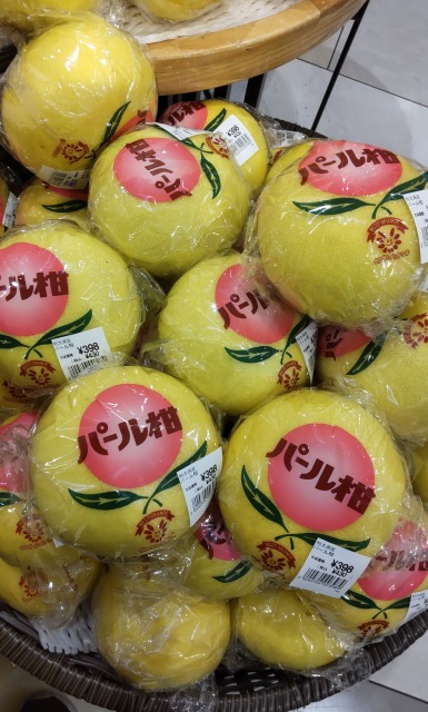 画像出典:筆者撮影(京王百貨店新宿店) ザボンの中でも果実が最大の品種で、直径は20㎝で、果実の重さは2㎏~3㎏である。わが国には大正時代末期に植物学者の島田弥市?がベトナムのサイゴン市から持ち込んだのが始まりだが、栽培方法が確立されたのは1930年代である。現在は熊本県八代市のブランド品となっている。果肉は淡い黄色で、柔らかく果汁に富む。酸味が強く、また若干苦味があるが、貯蔵することで甘みが引き出る。利用方法はザボンに同じ。