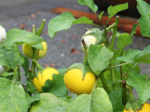 画像出典:https://botanic.jp/plants-sa/sinasu.htm 果実が鶏卵ほどの大きさの品種で、はじめは白色だが、熟すと黄色になる。このため、古くは金銀ナスビの名称で流通していた。現在は同名の雑草と混同するのを避けるため、「タマゴナス」あるいは「観賞用ナス」「白ナス」の名前で流通する。背丈も低いので、鉢植えで栽培する頃ができる。果肉は種が多く、硬いため食用にできない。