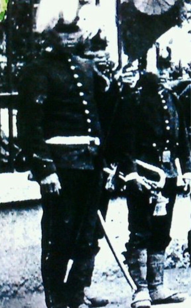 造幣局を前にずらりと並ぶ兵士たちのうち、最も左の旗を持った兵士(上画像二枚目)が西郷ではないかとされているのだ。