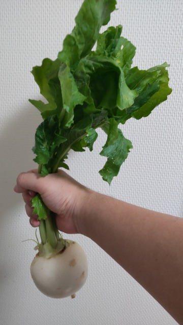 カブ(蕪、蕪靑)は、食用として栽培される作物の一種である。 画像出典:(左1)自宅にて筆者撮影。筆者弟が学校の菜園で収穫し持ち帰ったもの。(右1)東京都薬用植物園にて筆者撮影。トウ立ちした「小カブ」の系統。(左2)赤カブ。自宅近くの農産物直売所にて筆者撮影。(右2)日野菜カブ。根の長さは30㎝に達することも。東武百貨店池袋店にて筆者撮影。(左3)黄カブ。自宅近くの農産物直売所にて筆者撮影。(右3)聖護院カブ。東武百貨店池袋店にて筆者撮影。葉に栄養分がすべて持っていかれるため、流通に乗る際は葉を切り落とす 近似種