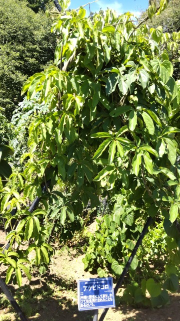 アケビドコロとは、救荒植物の一種である。 画像出典:東京薬科大学薬用植物園にて筆者撮影 科名:ヤマノイモ科ヤマノイモ属 学名:Dioscorea pentaphylla HOOK.f. 原産地:熱帯アジア 生態:つる性多年草 東南アジアが原産の蔓性多年草で、わが国への正式な渡来時期はよくわかっていないものの、沖縄など年間平均気温が高い地域に野生するほか、標本的に栽培される。茎は左巻きで他のものに巻き付いて伸び、葉は五枚の小葉が掌状につく。この葉の見た目がアケビの葉の付き方を思わせるため、「アケビドコロ」と呼ばれる。また、5枚の小葉から「ゴヨウドコロ(五葉野老)」と呼ばれる。 地下部には芋ができ、芋は白または黄色で、多くの細いひげ根が生える。 かつては野菜として栽培されていたが、現在はジャガイモやサツマイモなどの栽培が広まったことで栽培されることが少なくなり、野生品を掘り取って食すことが多い。芋は有毒成分を含んでいるので生食はできないが、よく煮て毒を抜いてから食する。芋はでんぷん質に富み、製粉してでんぷんをとることもある。