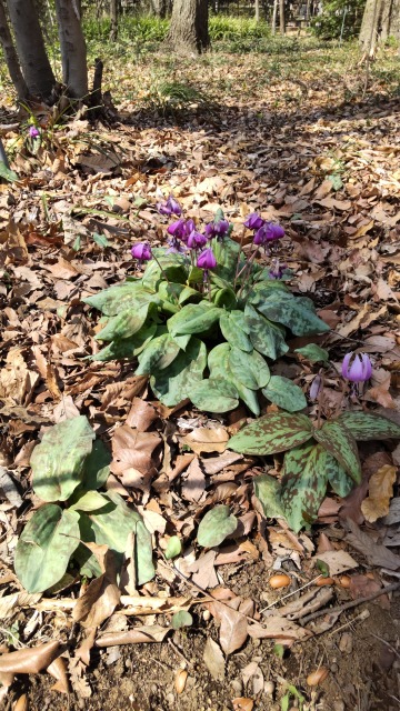カタクリは、山野草の一種である。 画像出典:東京都薬用植物園にて筆者撮影 科名:ユリ科カタクリ属 学名:Erythronium japonicum 原産地;日本・ロシア 生態:多年草 日本各地やロシア極東の温帯に分布する多年草である。山中の直射日光が差さない場所に生息する。 草丈は15㎝で、1本の茎に1つの花と1つの葉がある。葉は厚くて柔らかく、表面に紫色の独特の模様がある。 早春に花を咲かせ、直径4㎝~5㎝で、花被の内面に濃い紫色のw字型の模様がある。 鱗茎は良質なでんぷん質を含んでおり、古くは片栗粉の原料にされ、料理のとろみ付けや下痢止めに一役買っていた。花は酢の物、葉や茎はお浸しや和え物、生のまま天ぷら、炒め物にして食べられる。 しかし、現在は生息数を減らし、謙によっては絶滅危惧種に指定されているため、野生のものを摘み取ってはいけない。 歴史の古い植物で、「万葉集」には「かたかご」の名称で登場している。