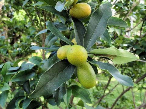 画像出典:自宅近くの植込みを撮影 中国福建省(福州)が原産なのでこの名称がある。果実はキンカン属のなかでは最も大きくなり、直径6㎝ほどになる。酸味が強くて甘味や香りはあまりないので、加工用に使われる。また、観賞用として庭木に植えられることもある。