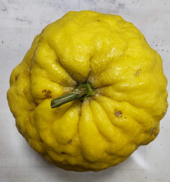 シシユズ(獅子柚子)は、果樹の一種である。 画像出典:筆者撮影 科名:ミカン科ミカン属 学名:Citrus pseudogulgul 原産地:中国 生態:常緑低木 中国が原産の落葉低木で、地植えで3mから4m、鉢植えで1mから2mとなる。わが国には奈良時代に渡来したという。花期は初夏(5~6月)で、白色で星形の芳香のある花を咲かせ、秋から冬にかけて果実をつける。果実は直径20㎝近くになり、表面はごつごつしており、芳香がある。当初は緑色だが、熟すにつれてレモン色になる。果重は1㎏内外で、グレープフルーツと同等か、それより少し重いくらいである。和名に「ユズ」とあるが、実際はザボンに近縁の種である。果肉、いわゆる砂じょう部分は果汁が少ないのでぱさぱさしており、酸味が強く、生食に向かない。分厚い果皮を適当な大きさに切ってからジャムや砂糖漬けにする。また、果実は長期保存がきくので、正月の飾りにも用いられる。 和名はごつごつした形状を獅子、いわゆるライオンの頭にたとえたもので、そのごつごつした見た目や、見た目のよく似たユズの果実より大ぶりなことから、「オニユズ」(鬼柚子)とも呼ばれる。