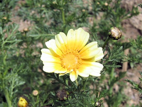 シュンギクは、野菜の一種である。 画像出典:いずれもhttps://botanic.jp/plants-sa/shungi.htm 科名:キク科シュンギク属 学名:Zanthophthalnum coronarium 原産地:ヨーロッパ 生態:一年草 別名:菊菜 南ヨーロッパ・地中海沿岸原産の一年草で、現在はわが国では野菜として栽培される一年草である。草丈は30㎝~60㎝になり、全体に毛はない。夏に花を咲かせ、花は黄色ないしは白色で、中心部が黄色くなるキク科特有の頭花を咲かせ、直立する茎の頂点に花を咲かせる。葉は切れ込みが深く細い歯で、全体に鋸歯がある。 和名の春菊は、春に若い葉を食するからという説と、ほかの菊類と異なり春に花を咲かせるからという説があるが、現在は後者の説が正しいとされている。関西方面では菊菜(きくな)の名称で知られる。 葉に切れ込みの少ない大葉が四国・九州・山口県で、切れ込みのある中葉がそれ以東でそれぞれ栽培される。大葉の品種は日本以外にも、中国や韓国、タイで栽培される。特有のほろ苦さがあり、汁の実や天ぷらで賞味される。 新宿を食用として栽培するのはアジア圏のみで、欧米では観賞用として栽培される。品種改良され、八重咲になった品種はハナゾノシュンギクという。