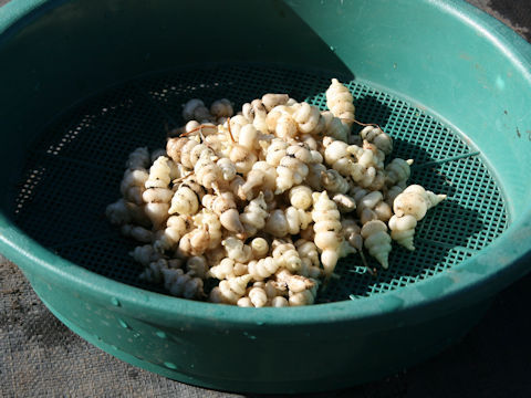 チョロギは、野菜の一種である。 画像出典:いずれもhttps://botanic.jp/plants-ta/chorog.htm 科名:シソ科イヌゴマ属 学名:Stachys sieboldi 原産地:中国 生態:多年草 中国原産の多年草で、塊茎を食用とするために栽培される。茎は四角形で直立し、草丈は30㎝~60㎝に達する。茎には下向きに細かい毛が生え、ざらざらしている。 秋に唇型の花を咲かせ、茎の先に数段の花が付く。秋から早春にかけて地下茎の先端に巻貝のような独特な形状の塊茎をつける。 この塊茎を掘り出して食用にし、わが国では年末年始に塊茎を梅酢漬けにしたものがお節料理の材料や酒のつまみとして出回る。ヨーロッパではフライやサラダにして食用にする。シャキシャキとした食感である。 和名のチョロギは、朝鮮語の「ジロイ」(ミミズの意味)が訛ったものであるという。